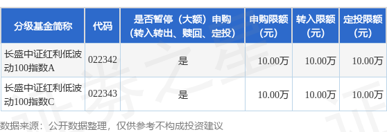 2025-10-15彩票,彩票平台,彩票网站,彩票APP下载,六合彩,快三证券之星消息,10月14日长盛基金管理有限公司发布《长盛中证红利低波动100指数型证券投资基金暂停大额申购、转换转入、定期定额投资业务的公告》。公告中提示,为保护基金份额持有人的利益,保障基金平稳运作,自2025年10月14日起长盛中证红利低波动100指数型证券投资基金暂停大额申购、转换转入、定期定额投资业务,申购、转换转入上限金额为10.0万元,下属分级基金调整明细如下: