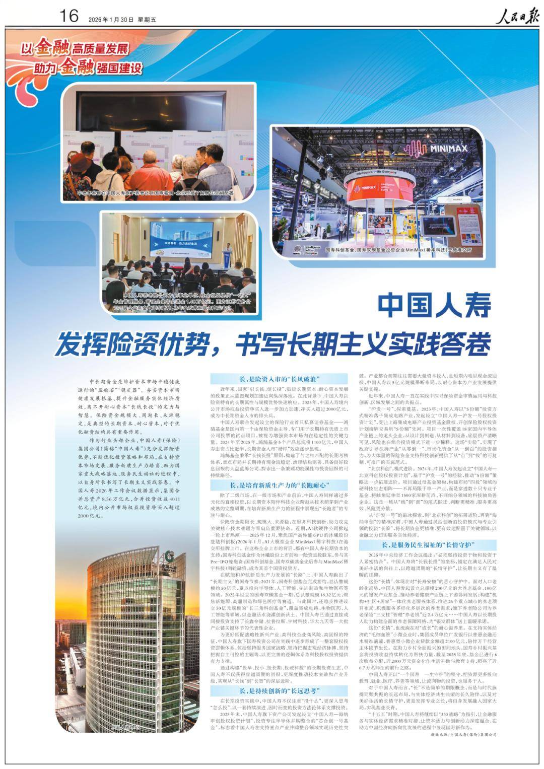 保险资金期限长、规模大、来源稳,在服务科技创新、助力攻克关键核心技术难题方面肩负重要使命。近期,AI软硬件公司掀起一轮上市热潮——2025年12月,聚焦国产高性能GPU的沐曦股份登陆科创板;2026年1月,AI大模型企业MiniMax(稀宇科技)在港交所挂牌上市。在这些企业上市的背后,都有中国人寿长期资本的支持:国寿科创基金作为沐曦股份上市前唯一险资直投股东,参与其Pre-IPO轮融资;国寿科创基金、国寿双碳基金先后参与MiniMax(稀宇科技)两轮融资,成为其首个国资投资方。