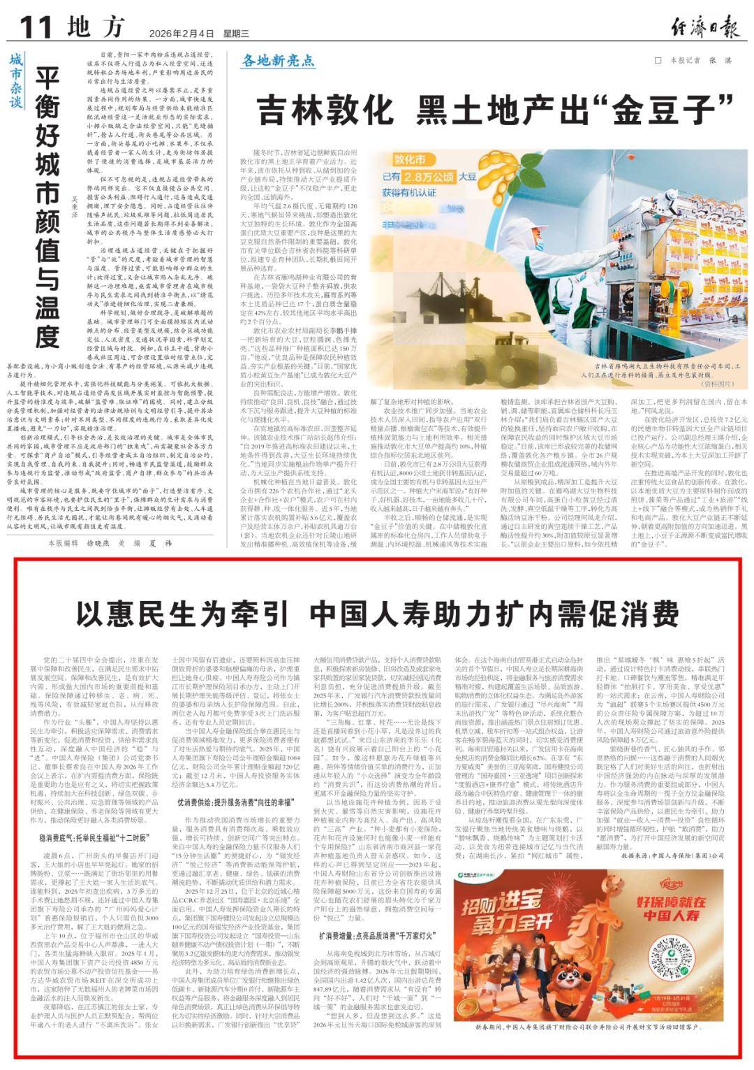 作为行业“头雁”,中国人寿坚持以惠民生为牵引,积极适应保障需求、消费需求等新变化,促进消费和投资、供给和需求良性互动,深度融入中国经济的“稳”与“进”。中国人寿保险(集团)公司党委书记、董事长蔡希良在中国人寿2026年工作会议上表示,在扩内需提消费方面,保险既是重要助力也是应有之义,将切实把握政策机遇,持续加大在科技创新、绿色双碳、乡村振兴、公共治理、应急管理等领域的产品供给,在健康保险、养老保险等领域有更大作为,推动保险更好融入各类消费场景。