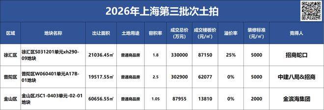 上海第三批土拍,徐汇长桥地块楼面价8.7万/㎡,溢价25%,未来售价大概率破13万/㎡。