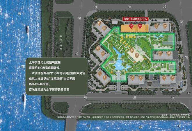生态绿肺:北接约200万方世博文化公园,南临滨江友城公园,推窗即揽7公里S湾壮阔江景,将城市喧嚣隔绝于外 。